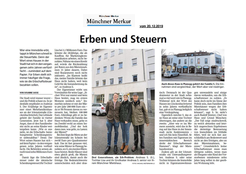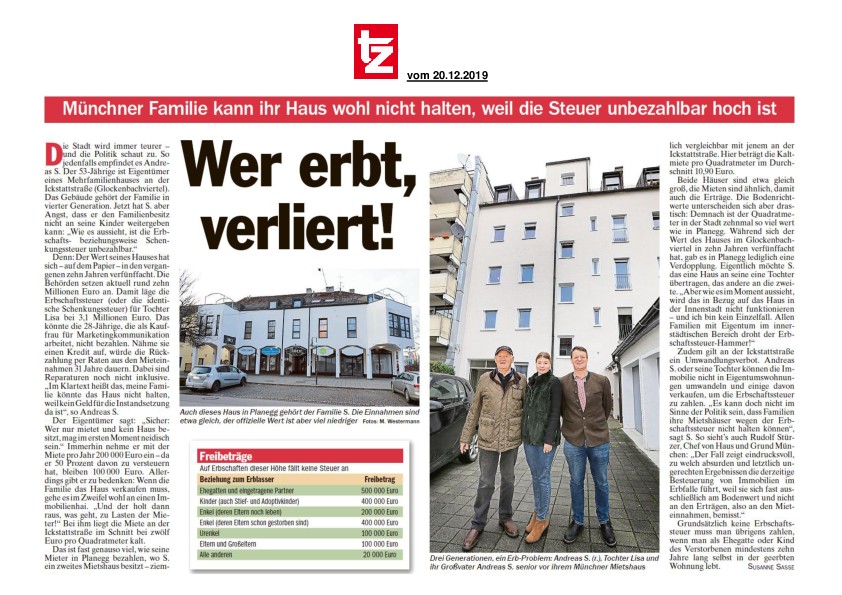 Münchner Familie kann ihr Haus wohl nicht halten, weil die Steuer unbezahlbar hoch ist.