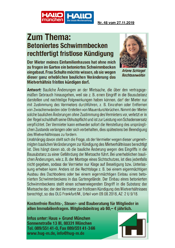 Betoniertes Schwimmbecken rechtfertigt fristlose Kündigung