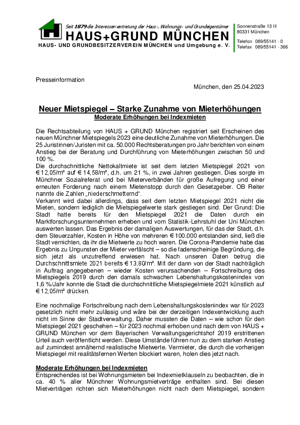 Neuer Mietspiegel – Starke Zunahme von Mieterhöhungen