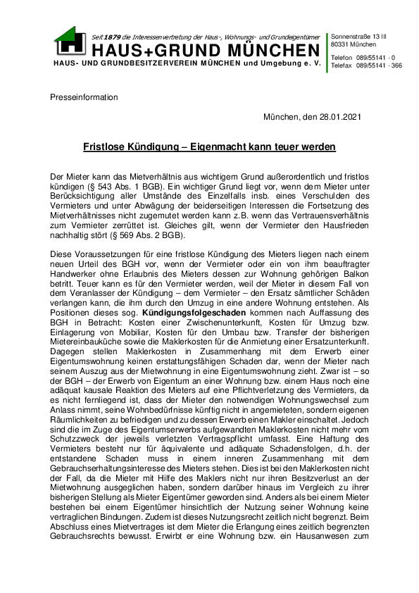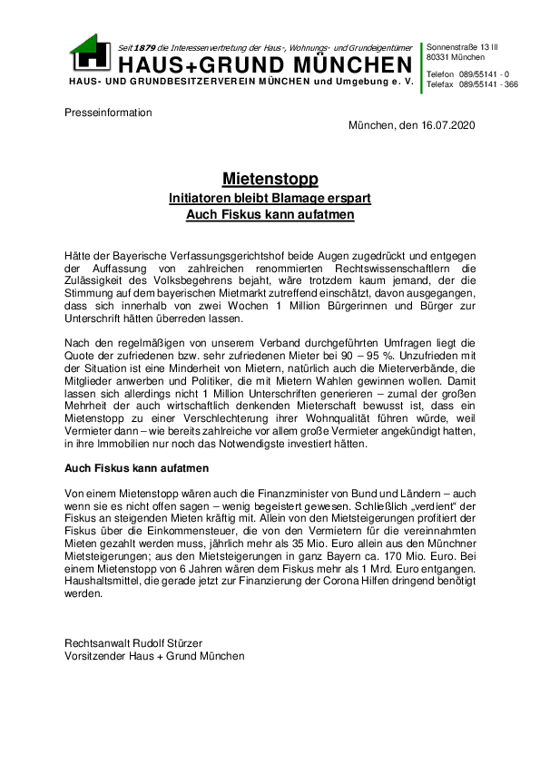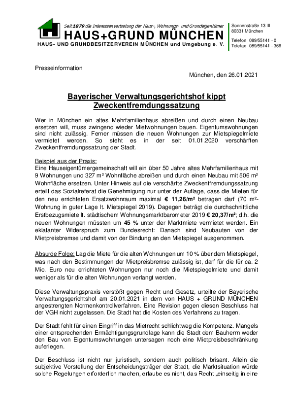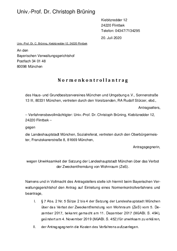 HAUS + GRUND MÜNCHEN hat beim Bayerischen Verwaltungsgerichtshof ein Normenkontrollverfahren gem. § 47 VwGO gegen die seit 01.01.2020 geltende Neufassung der Zweckentfremdungssatzung beantragt. Kommunale Zweckentfremdungssatzungen sind ein legitimes und von…
