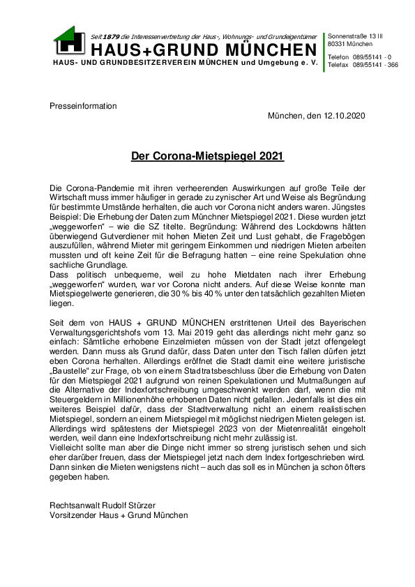 Der Corona-Mietspiegel 2021