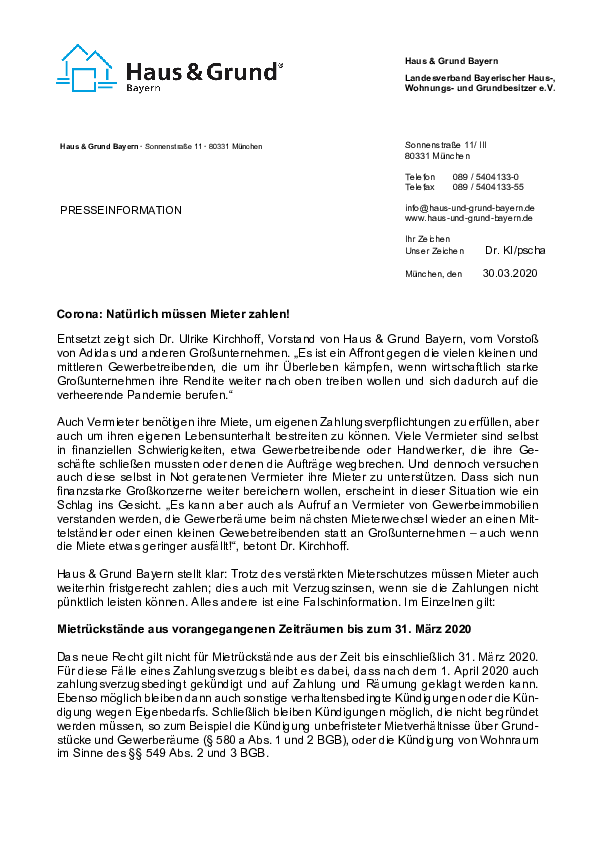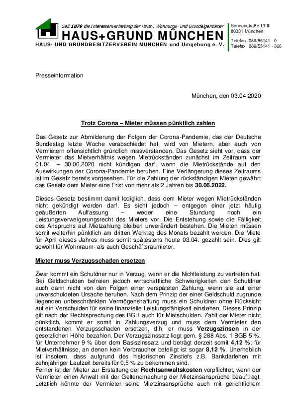 Trotz Corona – Mieter müssen pünktlich zahlen