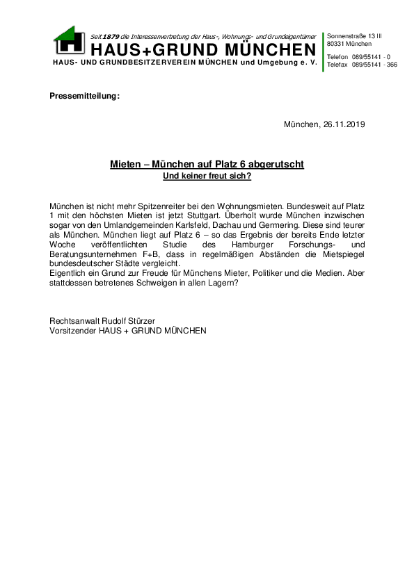 Mieten – München auf Platz 6 abgerutscht