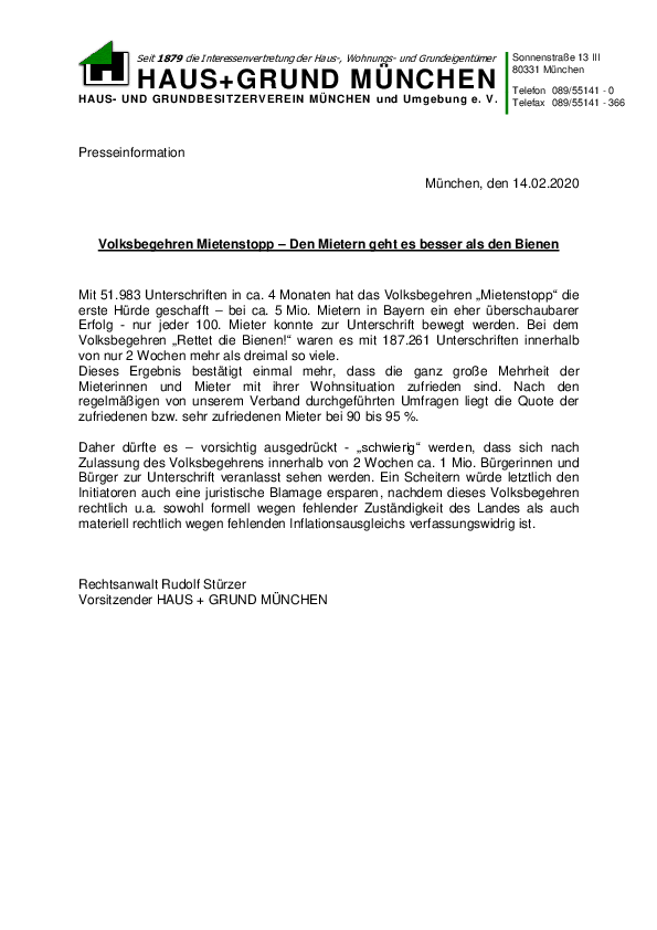 Volksbegehren Mietenstopp – Den Mietern geht es besser als den Bienen