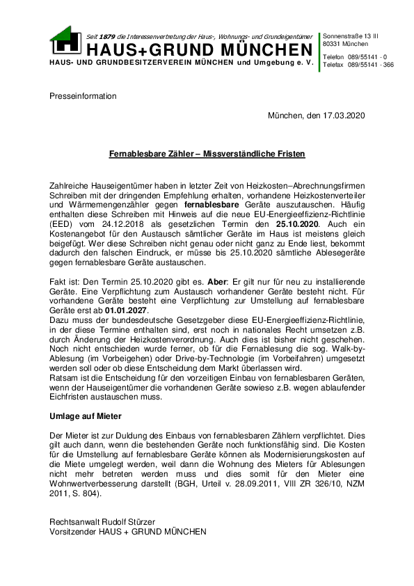 Fernablesbare Zähler – Missverständliche Fristen