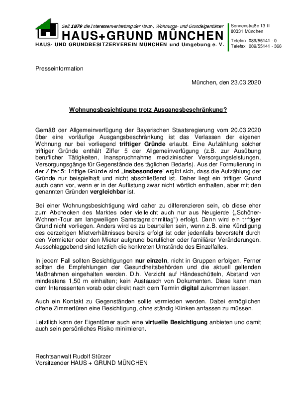 Wohnungsbesichtigung trotz Ausgangsbeschränkung?