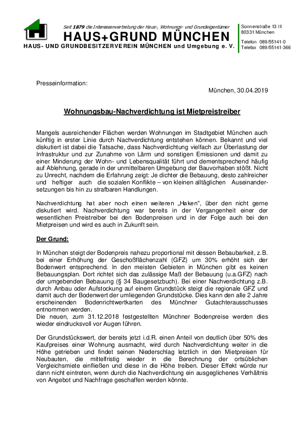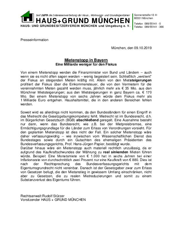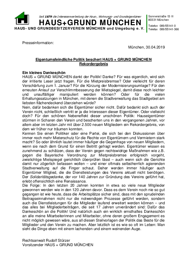 Eigentumsfeindliche Politik beschert HAUS + GRUND MÜNCHEN Rekordergebnis