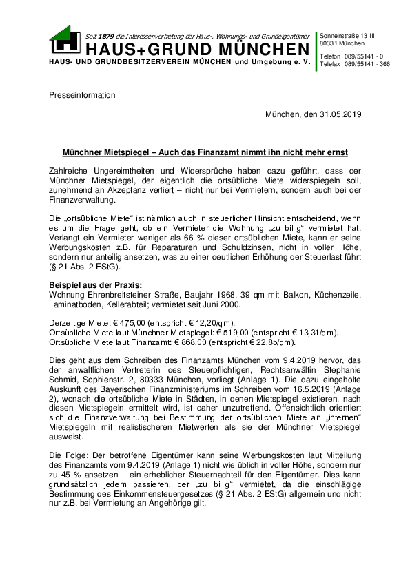 Münchner Mietspiegel – Auch das Finanzamt nimmt ihn nicht mehr ernst