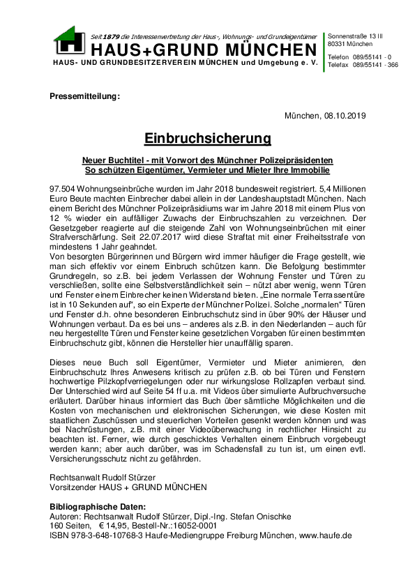 Neuer Buchtitel - mit Vorwort des Münchner Polizeipräsidenten So schützen Eigentümer, Vermieter und Mieter Ihre Immobilie