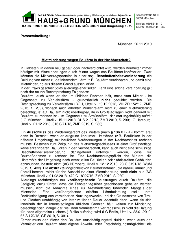Mietminderung wegen Baulärm in der Nachbarschaft?