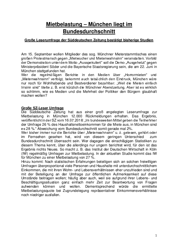 Mietbelastung – München liegt im Bundesdurchschnitt