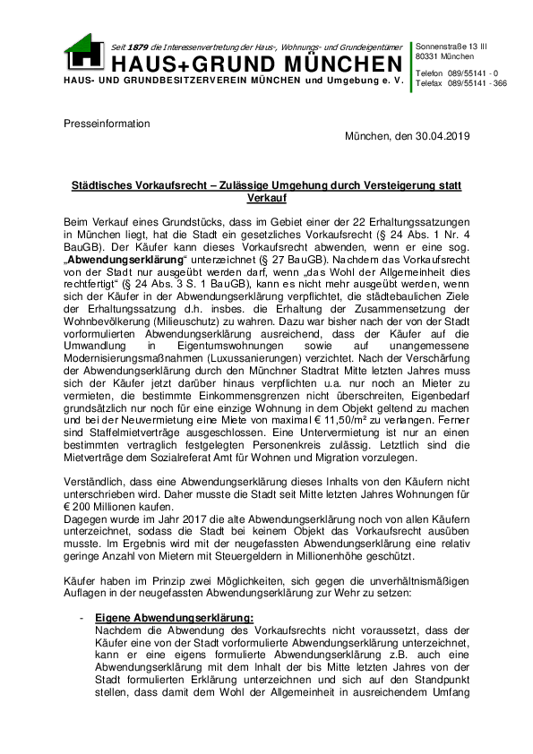Städtisches Vorkaufsrecht – Zulässige Umgehung durch Versteigerung statt Verkauf