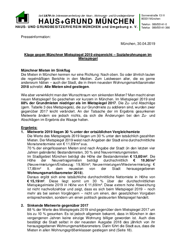 Klage gegen Münchner Mietspiegel 2019 eingereicht – Sozialwohnungen im Mietspiegel