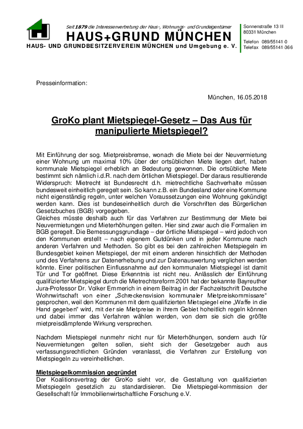 Gegen den Münchner Mietspiegel 2017 sind beim Bayerischen Verwaltungsgericht München derzeit 2 Klagen von HAUS+GRUND MÜNCHEN anhängig. Klage auf Auskunft Die bereits voriges Jahr eingereichte Klage auf Auskunft über die…