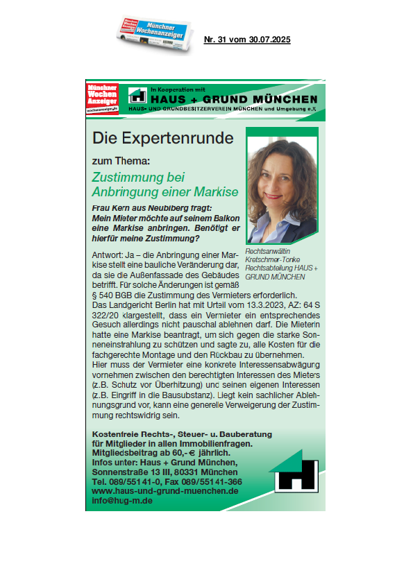 Zustimmung bei Anbringung einer Markise