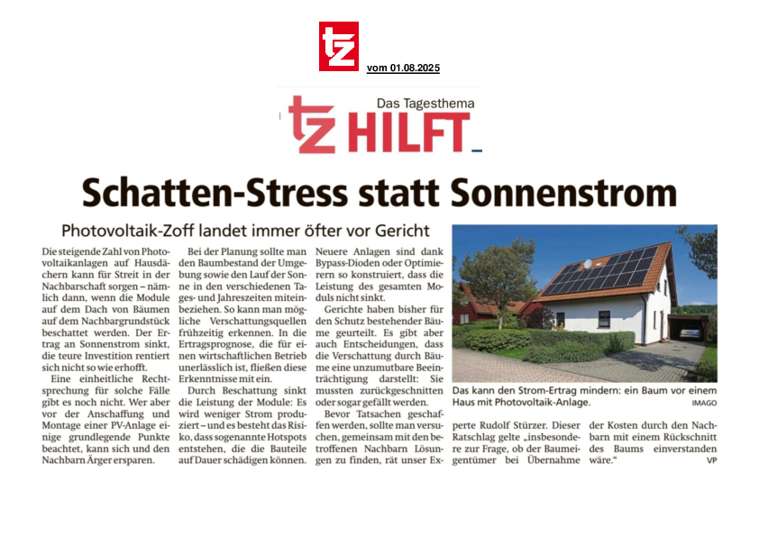 Schatten-Stress statt Sonnenstrom