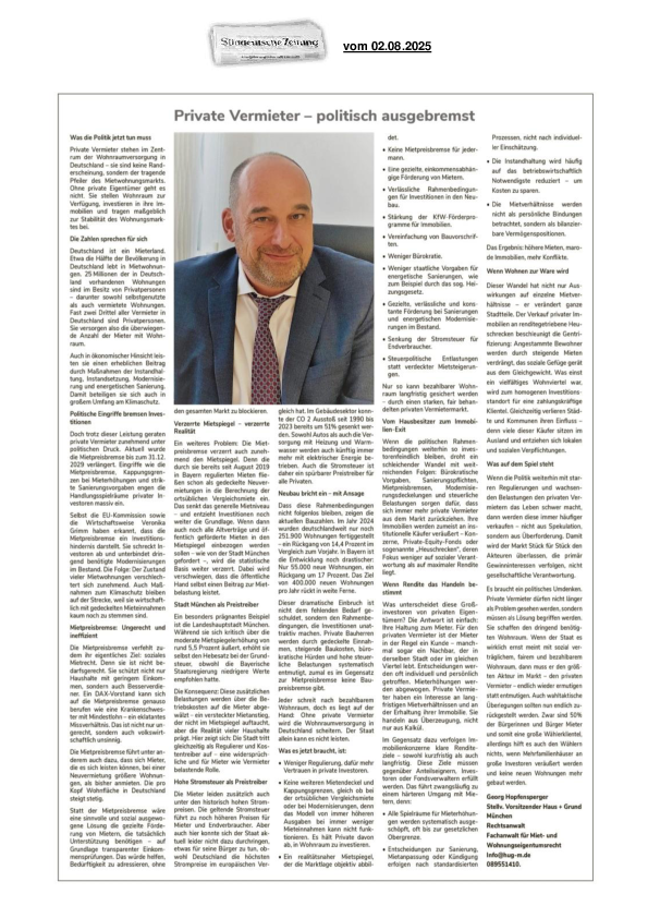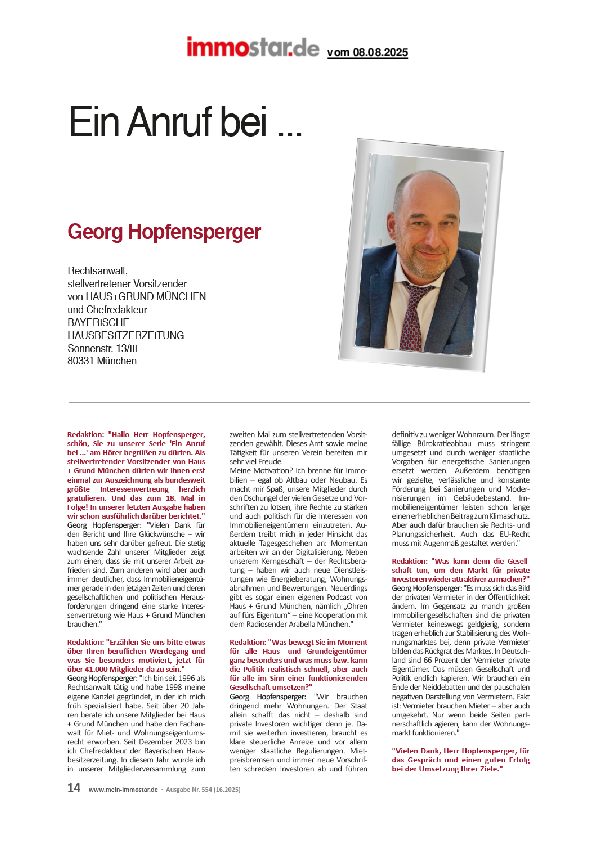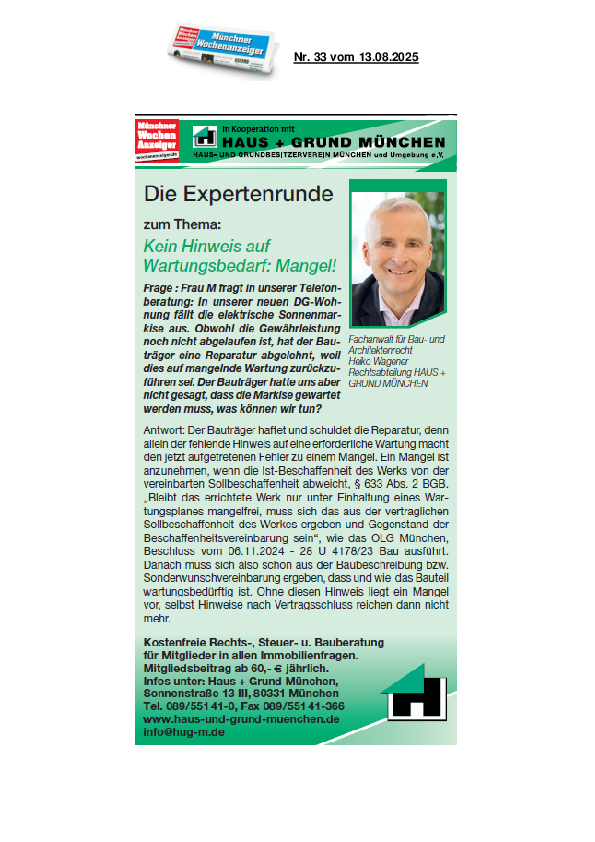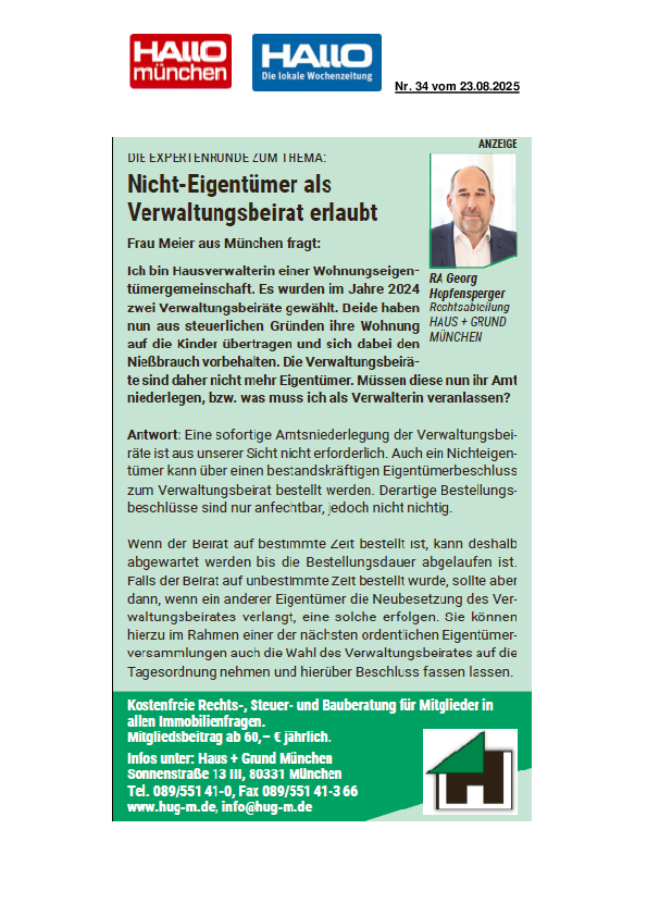 Neue Dienstleistung HAUS + GRUND München