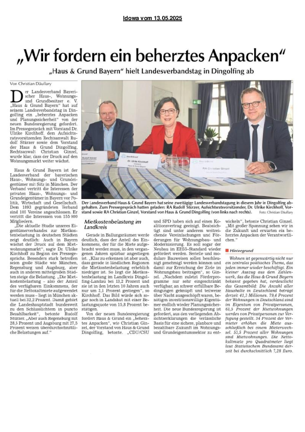 "Haus & Grund Bayern" hielt Landesverbandstag in Dingolfing ab