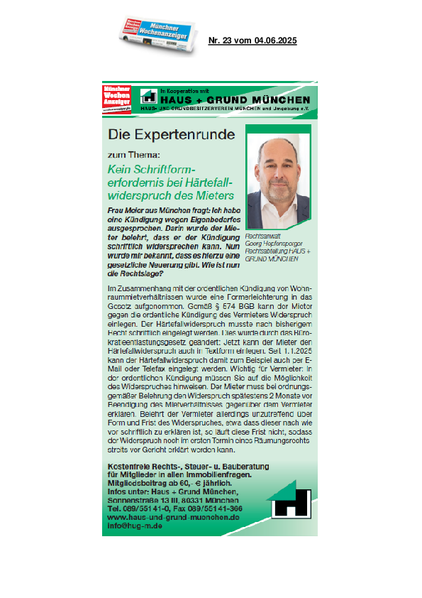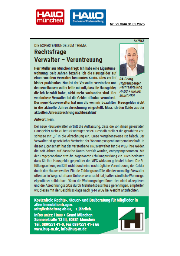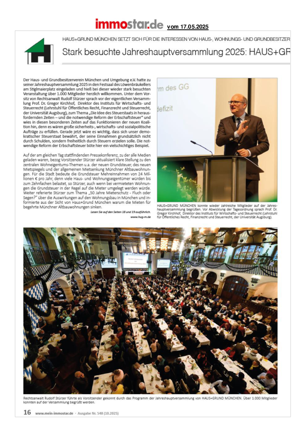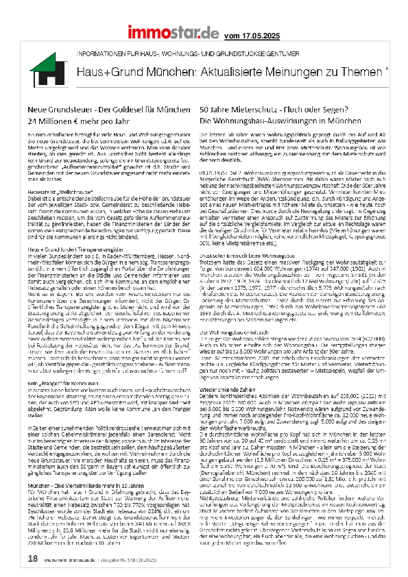 Haus + Grund München: Aktualisierte Meinungen zu Themen „Neue Grundsteuer, 50 Jahre Mieterschutz und Mietspiegel“