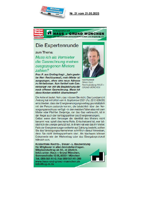 Muss ich als Vermieter die Gasrechnung meines ausgezogenen Mieters zahlen?