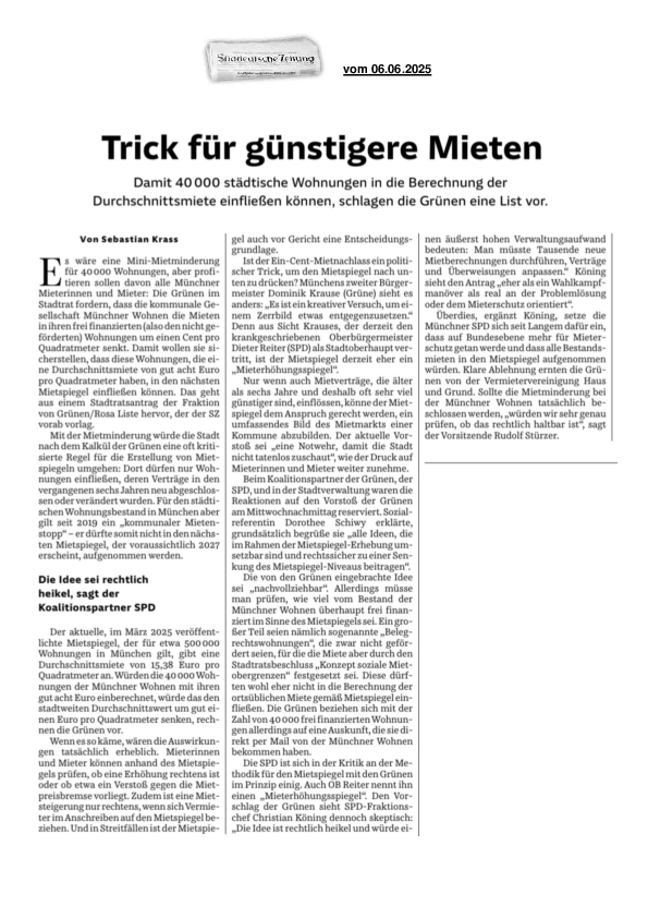 Damit 40.000 städtische Wohnungen in die Berechnung der Durchschnittsmiete einfließen können, schlagen die Grünen eine Liste vor.