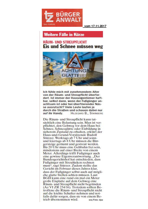 Die Vernachlässigung der Räum- und Streupflicht durch den Hauseigentümer oder den damit beauftragten Mieter kann nicht nur zu erheblichen Schadens-ersatzforderungen des Geschädigten, sondern auch zu einem Strafverfahren wegen fahrlässiger Körperverletzung führen.