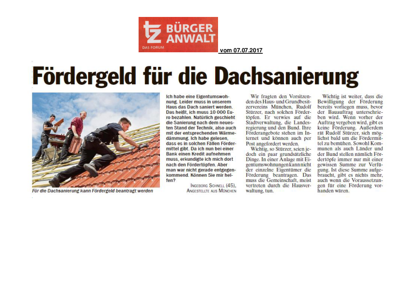 Fördergeld für die Dachsanierung