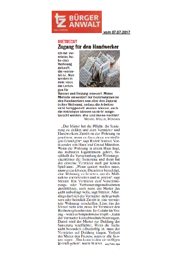 Mietrecht: Zugang für Handwerker