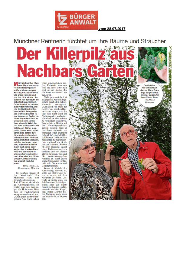TZ Bürgeranwalt - Münchner Rentnerin fürchtet um ihre Bäume und Sträucher