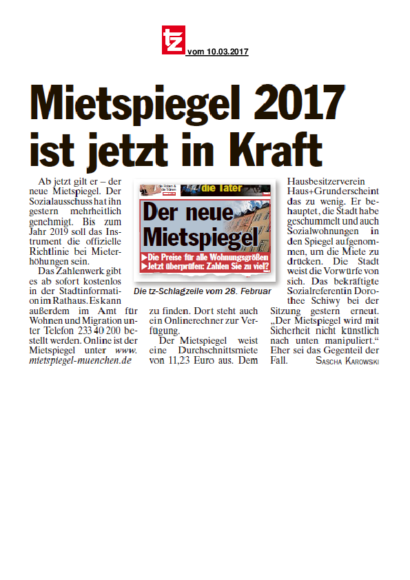 Mietspiegel 2017 ist jetzt in Kraft