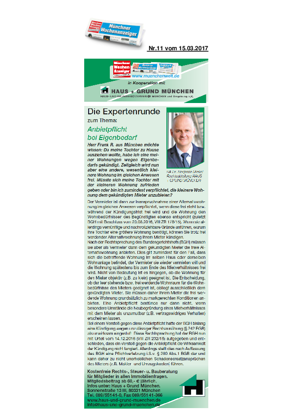 Anbietpflicht bei Eigenbedarf