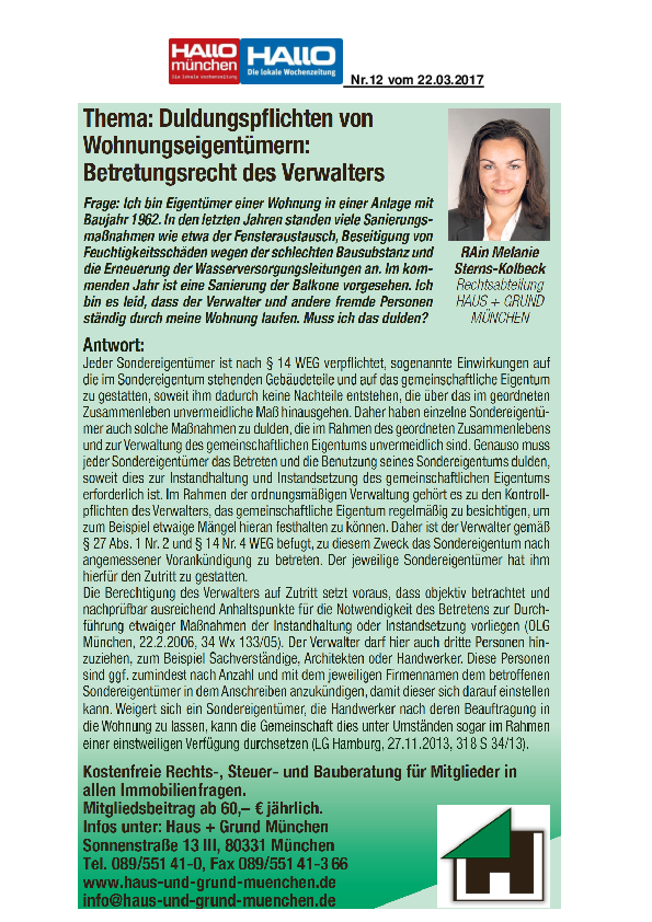 Duldungspflichten von Wohnungseigentümern: Betreuungsrecht des Verwalters