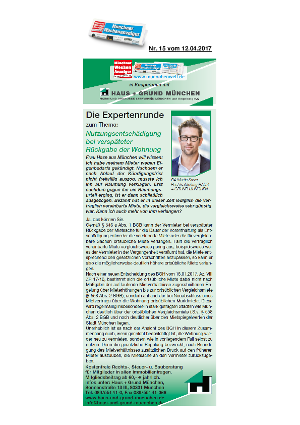 Nutzungsentschädigung bei verspäteter Rückgabe der Wohnung