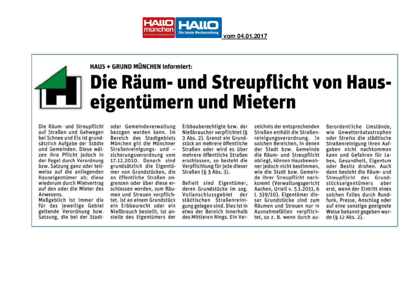 Die Räum- und Streupflicht von Hauseigentümern und Mietern