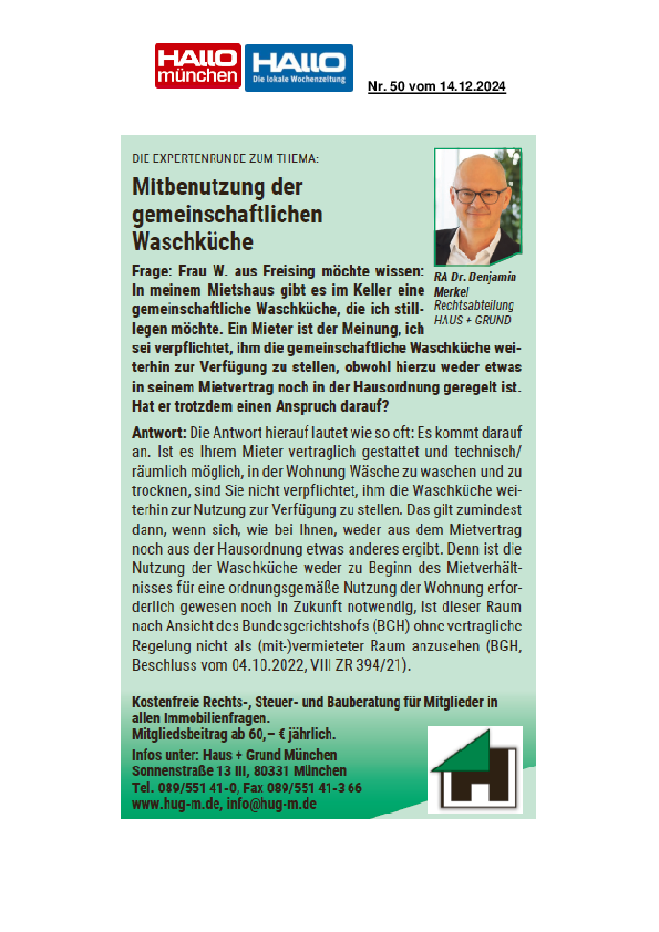 Mitbenutzung der gemeinschaftlichen Waschküche