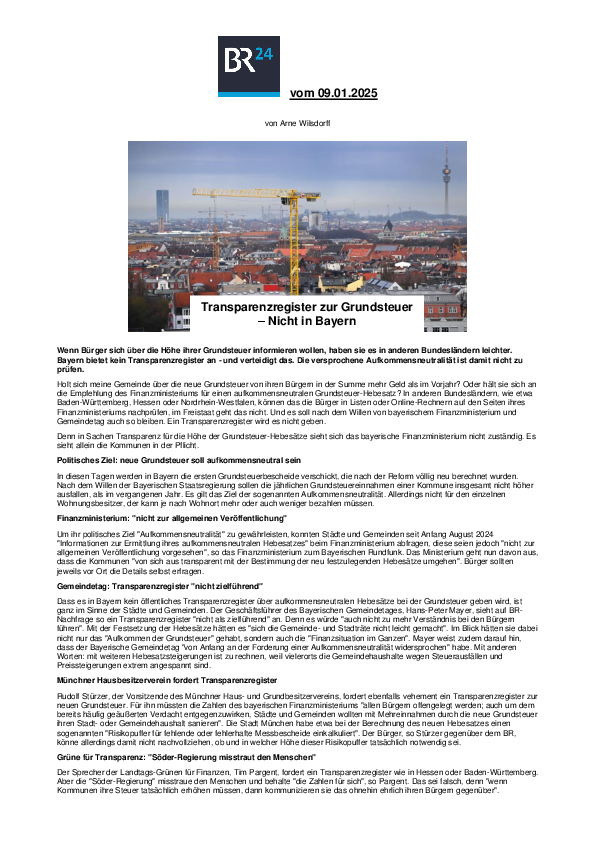 Transparenzregister zur Grundsteuer – Nicht in Bayern