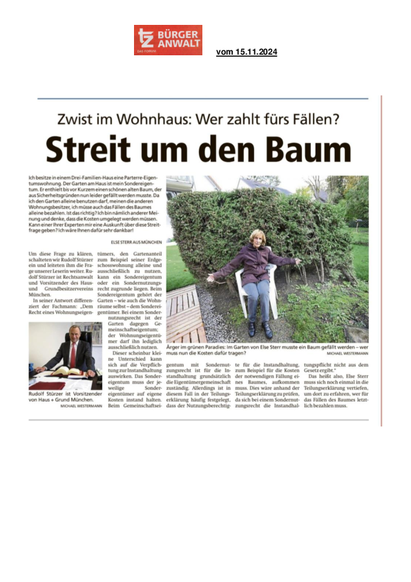 Zwist im Wohnhaus: Wer zahlt fürs Fällen?