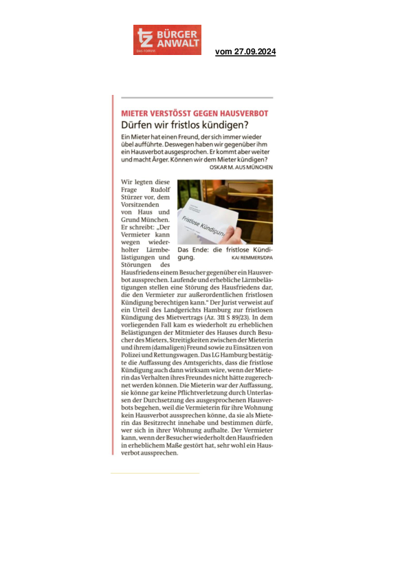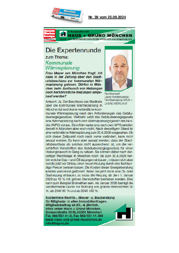 RA Rudolf Stürzer kritisiert im Interview mit der Rundschau des Bayerischen Fernsehens, dass die Höhe der vom Vermieter zu zahlenden CO2-Abgabe nicht vom energetischen Zustand des Gebäudes, sondern allein vom Verbrauch des Mieters bestimmt wird.