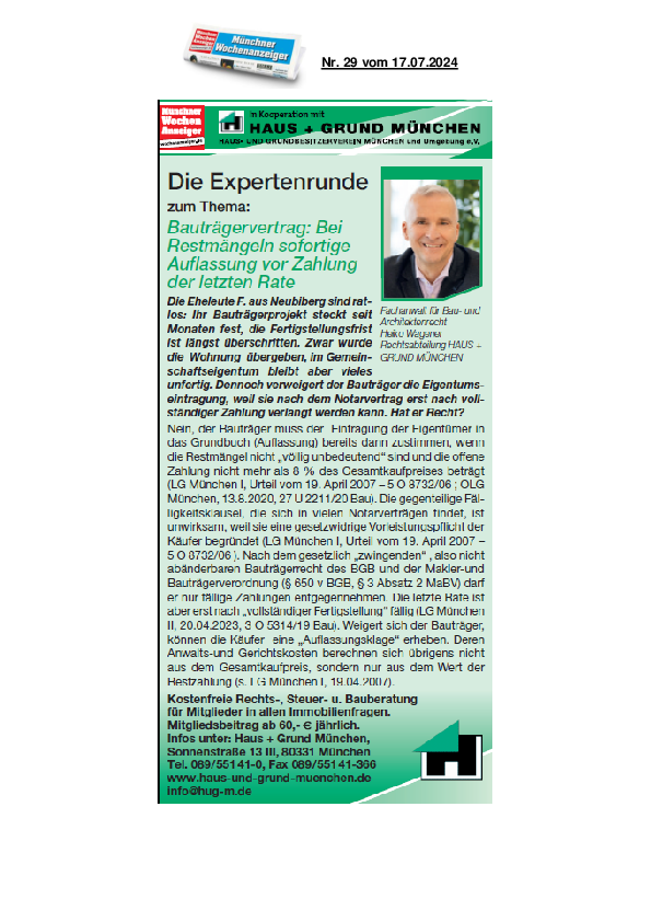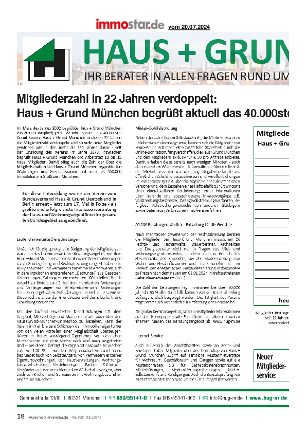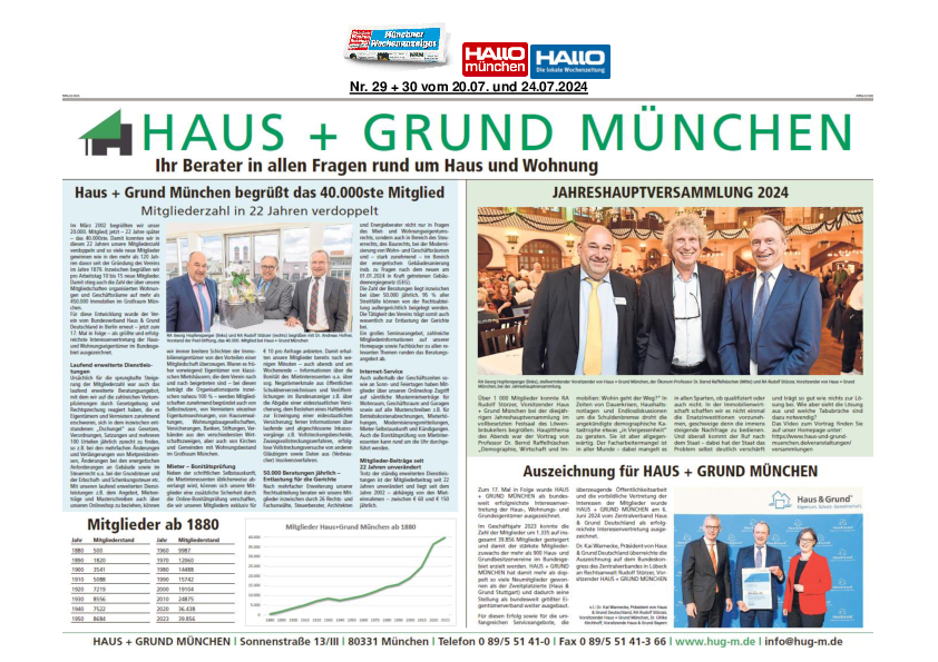 Mitgliederzahl in 22 Jahren verdoppelt: Haus + Grund München begrüßt aktuell das 40.000ste Mitglied