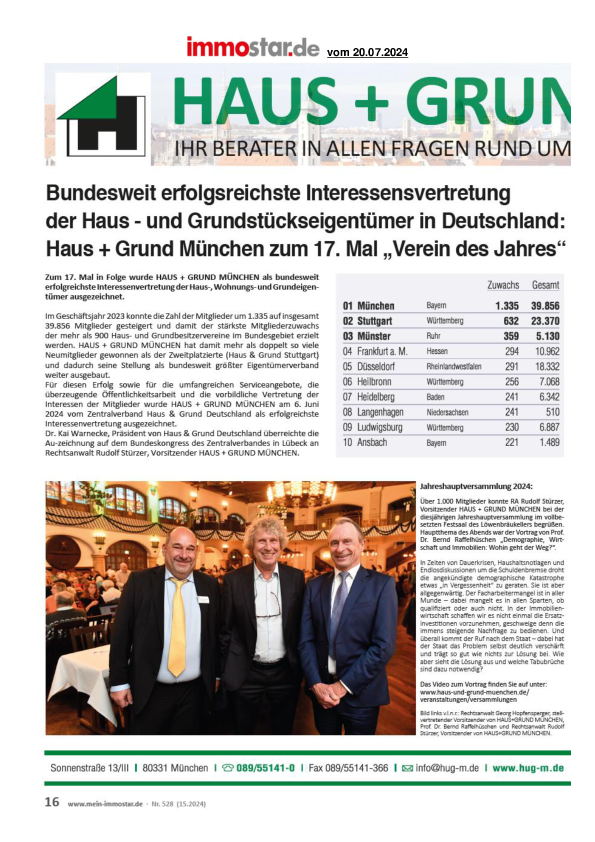 HAUS + GRUND MÜNCHEN zum 17. Mal „Verein des Jahres“