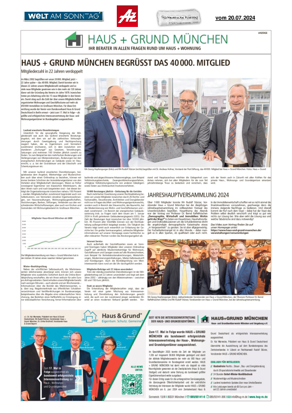 HAUS + GRUND MÜNCHEN begrüßt das 40.000. Mitglied