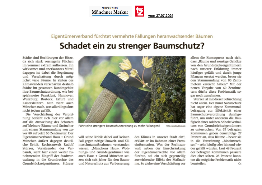 Eigentümerverband fürchtet vermehrte Fällungen heranwachsender Bäumen