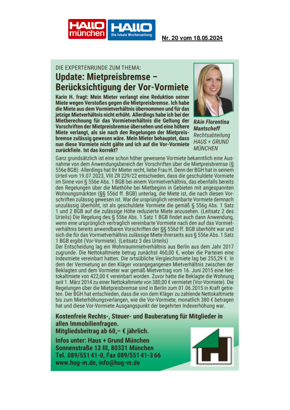 Update: Mietpreisbremse – Berücksichtigung der Vor-Vormiete