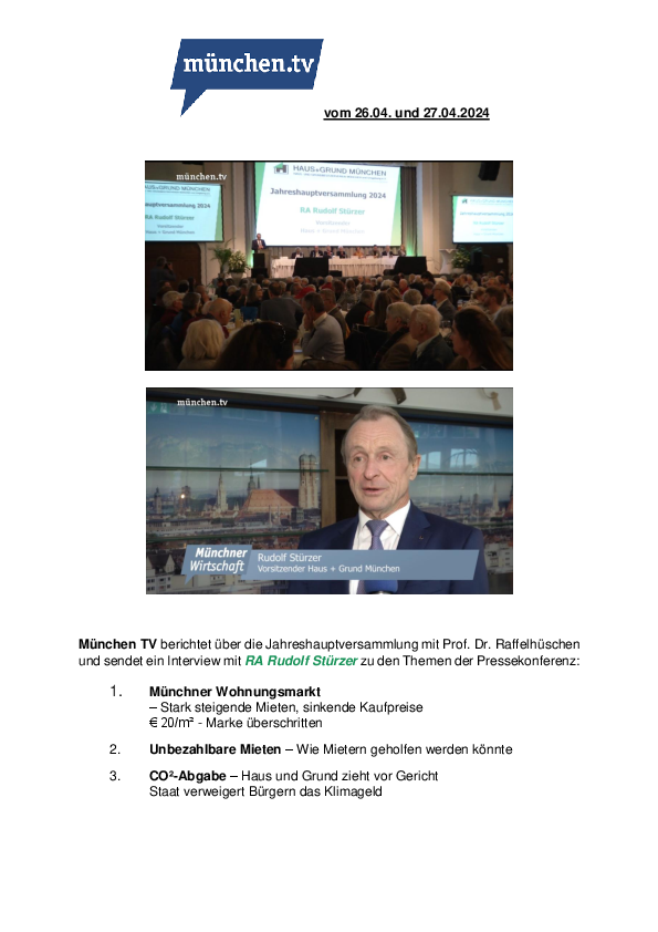 Münchner Wohnungsmarkt – Stark steigende Mieten, sinkende Kaufpreise // Unbezahlbare Mieten – Wie Mietern geholfen werden könnte // CO²-Abgabe – Haus und Grund zieht vor Gericht
