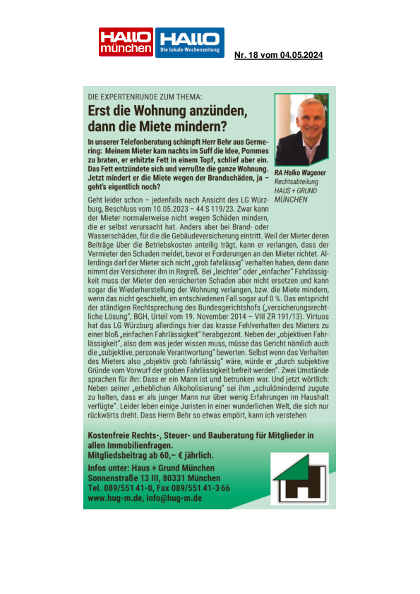 Anzeige HAUS + GRUND MÜNCHEN