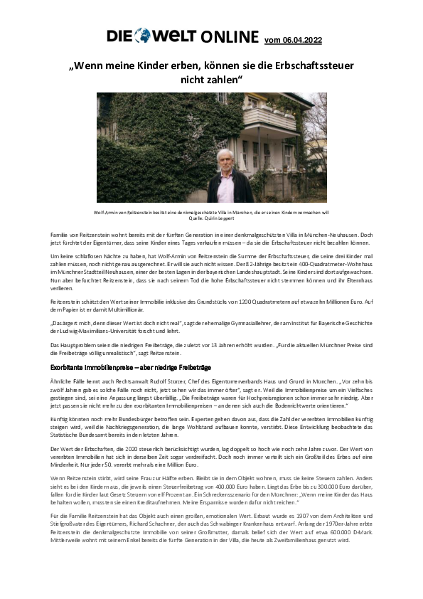 „Wenn meine Kinder erben, können sie die Erbschaftssteuer nicht zahlen“