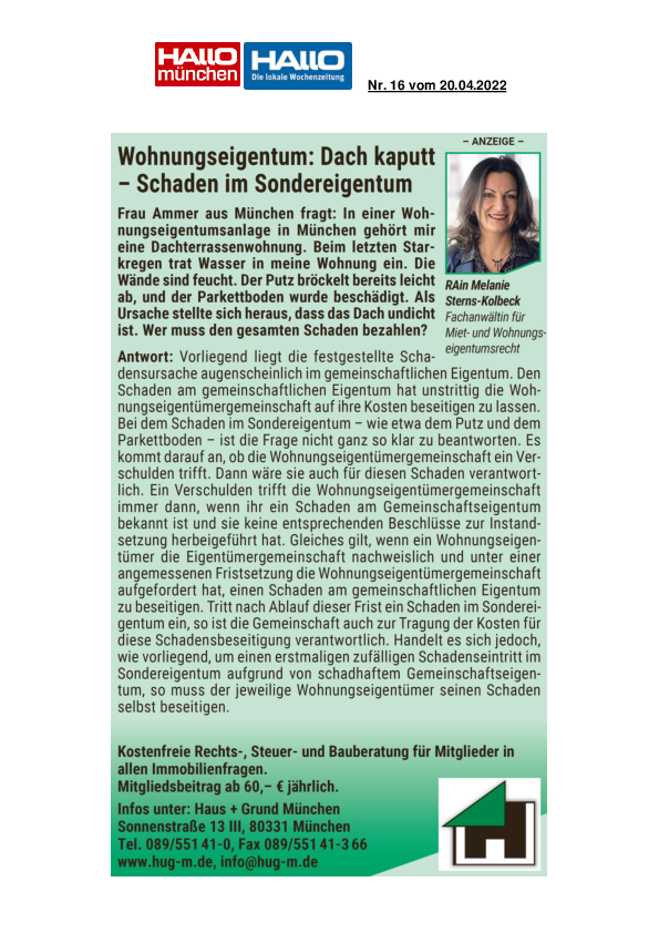 Wohnungseigentum: Dach kaputt – Schaden im Sondereigentum