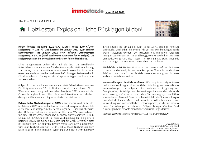 Heizkosten-Explosion: Hohe Rücklagen bilden!