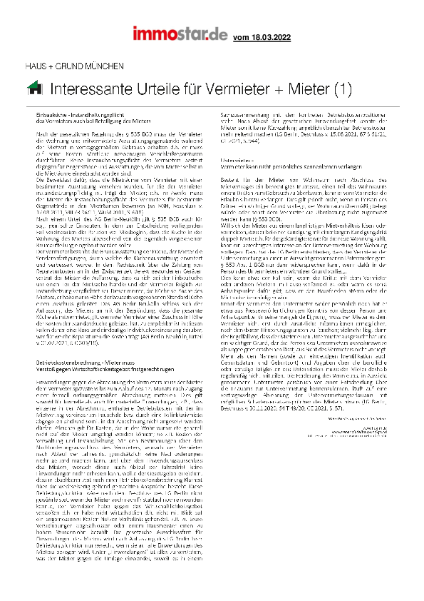 Interessante Urteile für Vermieter + Mieter