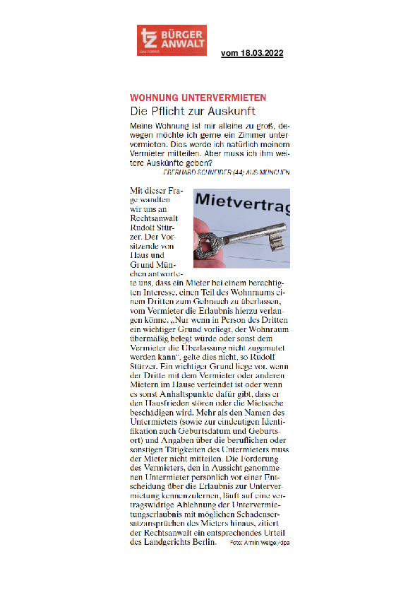Wohnung untervermieten